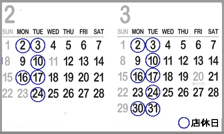 *○定休日*毎週火曜・第1・第3・第5月曜