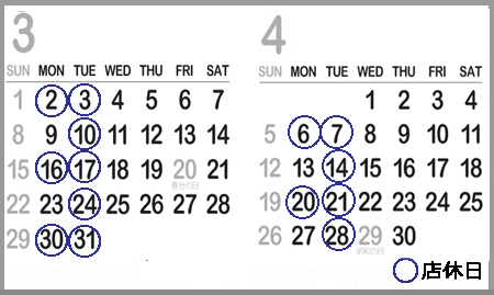 *○定休日*毎週火曜・第1・第3・第5月曜